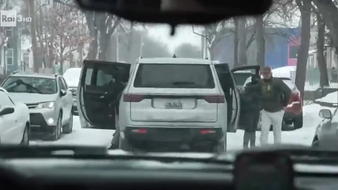 Pamjet që u transmetuan tregojnë një kameraman dhe një korrespondent nga emisioni i analizës politike “In Mezz’ora ” në një makinë duke filmuar skena në Minneapolis. Pak më tej, ndodhet një automjet i ICE, policia federale e imigracionit dhe doganave.