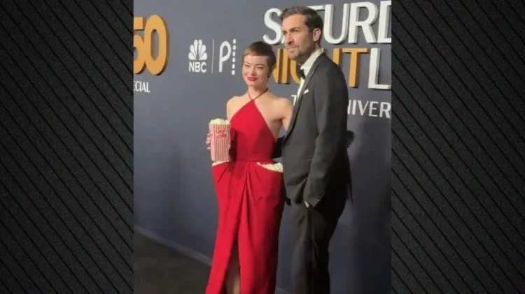 Emma Stone arriti të bëhej virale në internet me pamjen që zgjodhi për 50-vjetorin e SNL. Aktorja parakaloi në tapetin e kuq me një fustan të veçantë, i cili kishte edhe vend për ushqime.