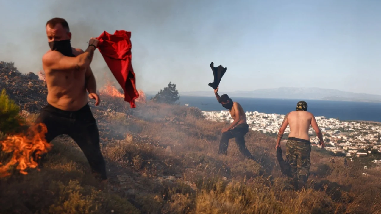 Rreth 130 zjarrfikës, të mbështetur nga dhjetëra vullnetarë, po luftojnë me flakët prej orësh në një terren të vështirë dhe të përfshirë nga tymi i dendur. Për shkak të rrezikut të lartë, mbi 1000 banorë janë evakuuar nga katër fshatra, Triantafyllia, Charakas, Katafygi, Tourkolimano si dhe nga qyteza bregdetare Thymari, pas sinjalizimeve të vazhdueshme nga numri i emergjencës civile 112.