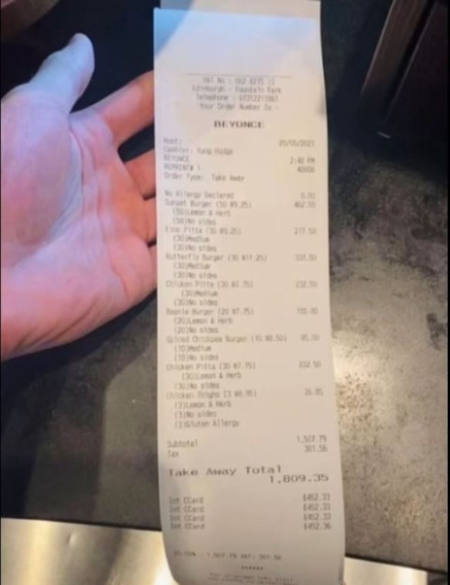 Këngëtarja ka shpenzuar 2080 euro në një restorant, gjatë turneut të saj në Murrayfield të Skocisë. Ishte 41-vjeçarja ajo e cila ushqeu të gjithë stafin me ushqim. Këngëtarja porositi 110 hamburgera pule, duke bërë një faturë që i kalonte 2000 euro. Për t’u siguruar që i gjithë grupi i saj do të ishte i kënaqur, ajo porositi ushqim nga e gjithë menyja, duke përfshirë opsionet vegjetariane.