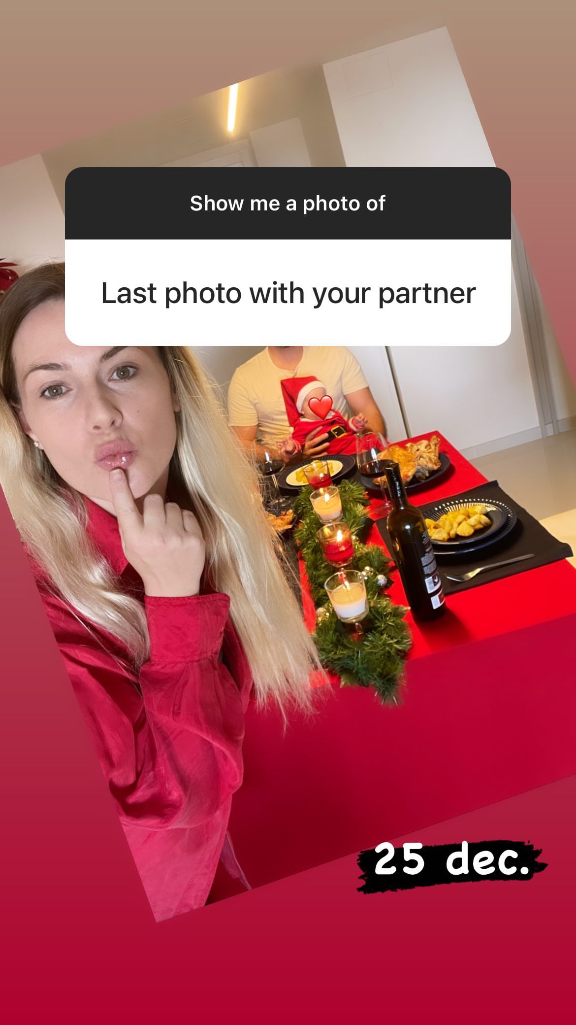 Ndër të tjera, Oltës i është kërkuar një foto me partnerin, fotoja e fundit me të, takimi i tyre i parë dhe fotoja e parë me Amar.