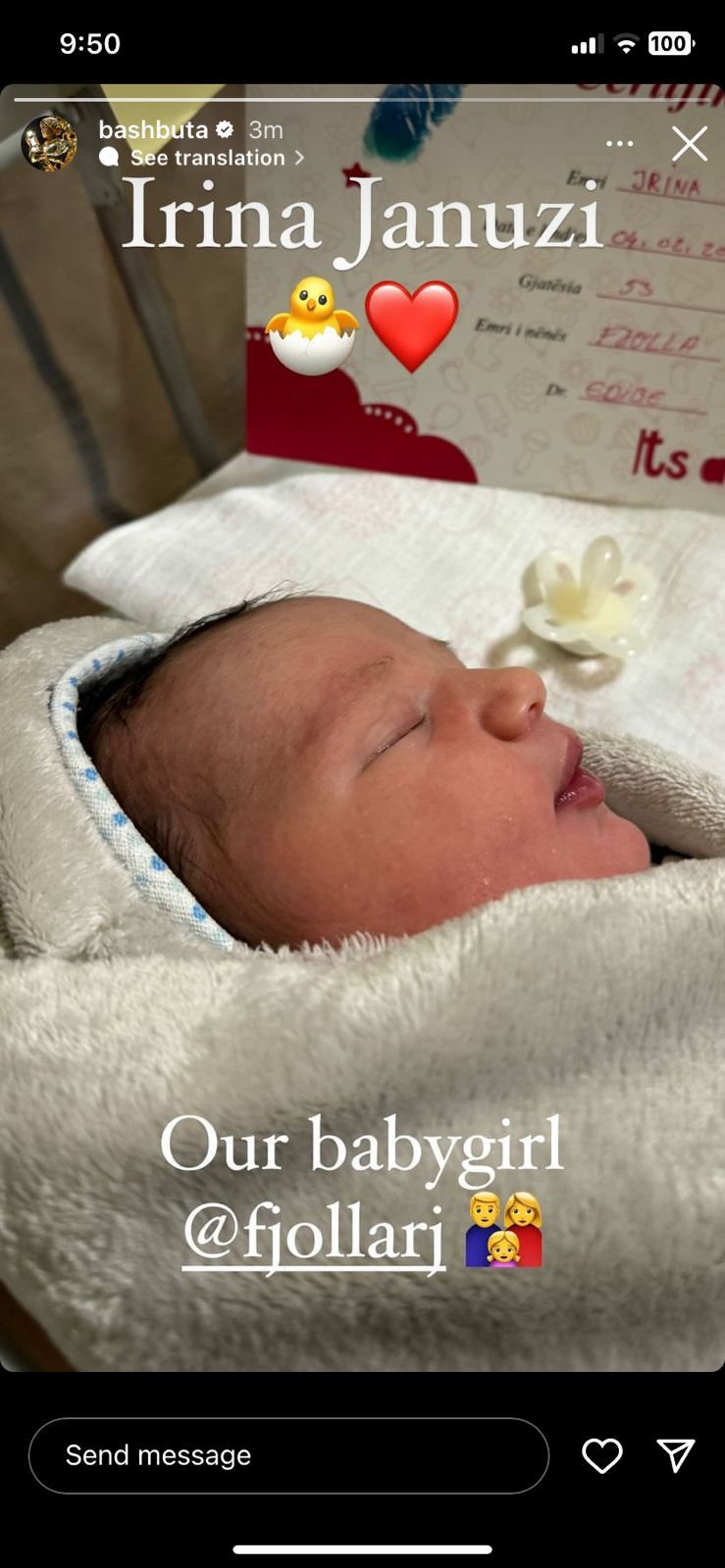 Lajmin e ka bërë të ditur vetë ai me anë të një Instastory në faqen e tij zyrtare ku tregon edhe emrin e vajzës së tij, të cilën e ka quajtur Irina.