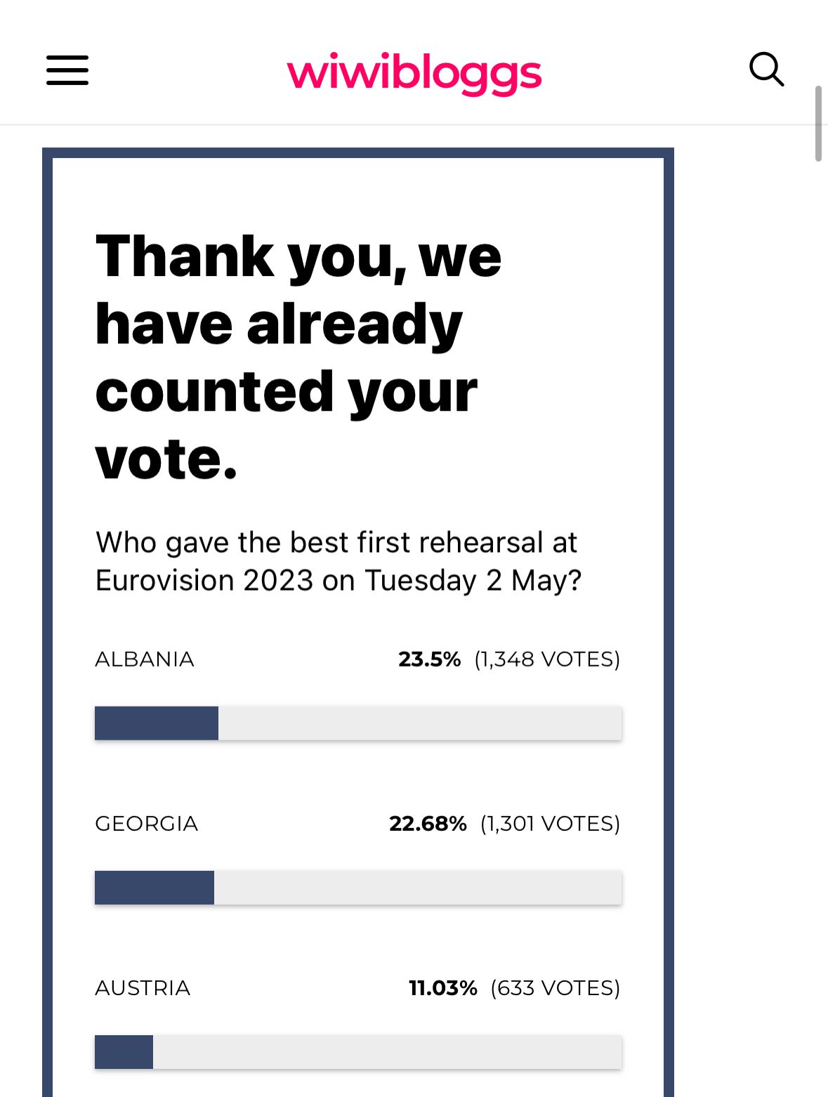 “Kush e dha provën e parë më të mirë në Eurovision 2023 të martën e 2 majit?”, ishte pyetja në Wiwi Bloggs.