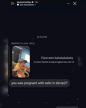 Pas postimeve dhe komenteve të shumta nga ndjekësit, ku dy vajzat u krahasuan për pamjen fizike dhe stilin, Dea Mishel ka reaguar publikisht përmes një story në Instagram. Ajo ka publikuar një mesazh që i ishte dërguar nga një ndjekës, i cili e pyeste nëse kishte qenë shtatzënë në të njëjtën kohë me Selin gjatë “Big Brother VIP 2”, duke e shoqëruar reagimin e saj me ironi.
