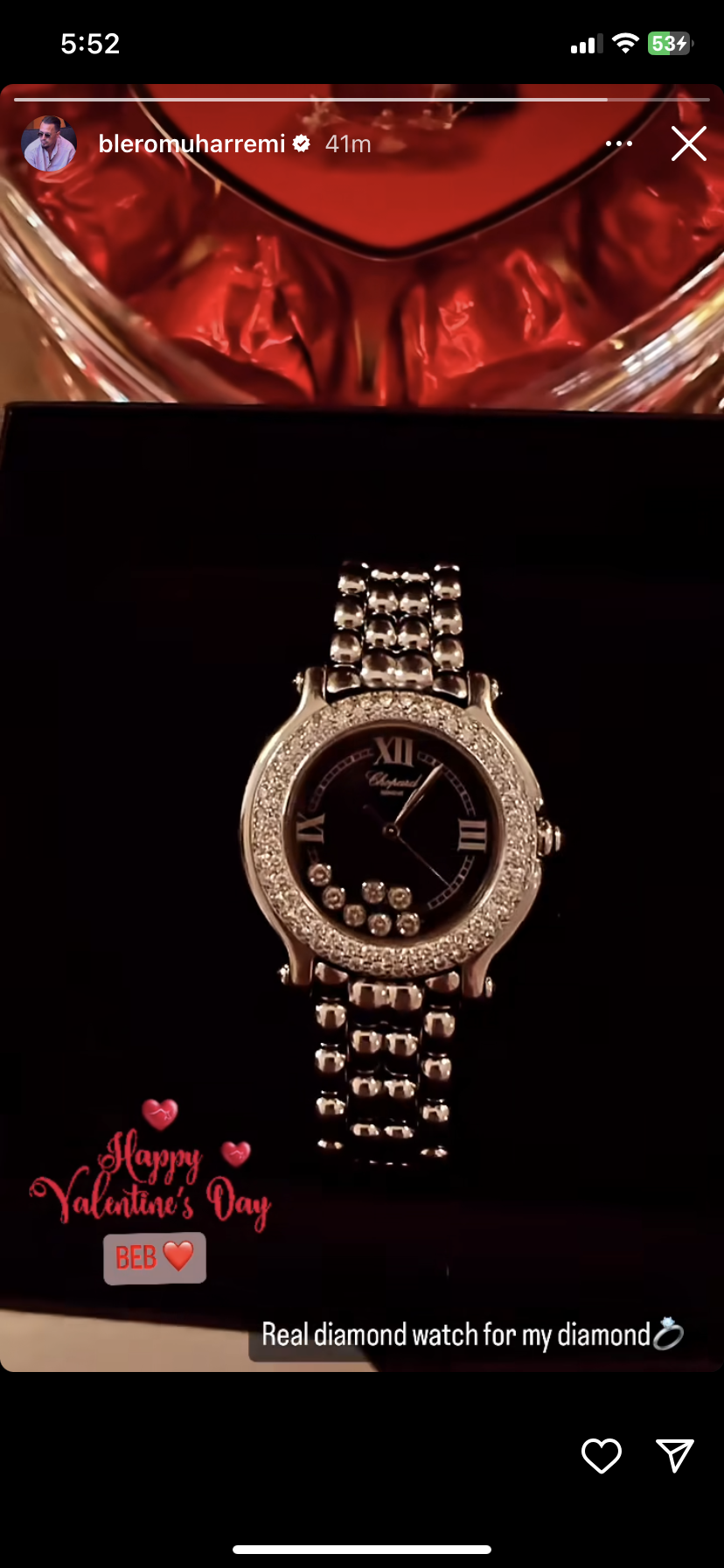 Përkrah fotografisë ai shkruan: ‘Një orë me diamant të vërtetë për diamantin tim!’
