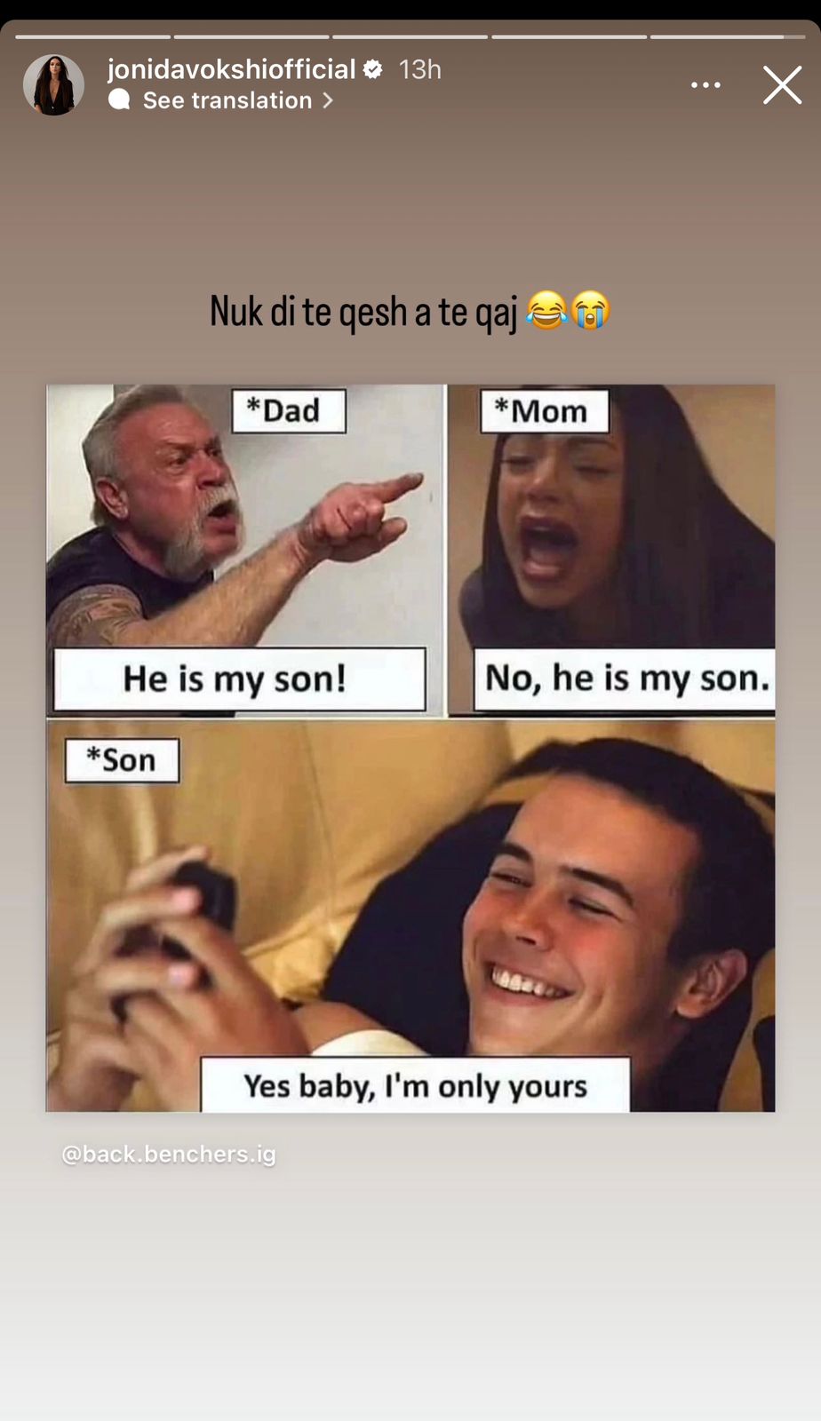 Mirëpo, duket se ajo që do e presë më pas e bën për të qarë e për të qeshur në të njëjtën kohë. Ajo ka postuar një meme, që sipas saj mund të bëhet realitet.