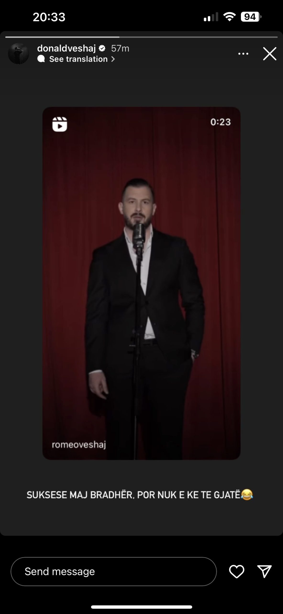 ”Suksese maj bradher, por nuk e ke të gjatë”-shkruan Donaldi në “instastory”.
