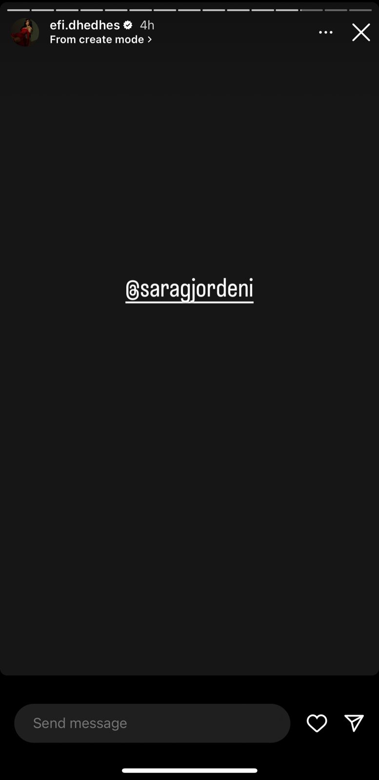 Ndërkohë që në story-t pasardhëse ajo thumbon një banor tjetër në shtëpi, pa e thënë se cilin por habit fakti që ka bërë tag Sara Gjordenin, gjë që na bën të mendojmë se mund ta ketë me atë.