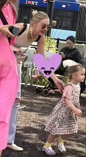 Së fundmi, rregullin e ka kthyer Gigi e cila është fotografuar me të voglën e saj në një park. Mami sportive, ndërsa goca e veshur më një fustan, dyshja duken se po kalojnë kohë cilësore me njëra-tjetrën.