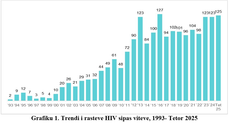 Sipas të dhënave më të fundit nga Instituti i Shëndetit Publik (ISHP), viti 2025 ka shënuar 125 raste të reja deri në muajin tetor, duke sinjalizuar një rikthim në nivelet më të larta të regjistruara që nga viti 2016. Që nga viti 1993, numri total i personave të prekur në vend ka arritur në një total prej 1,973.