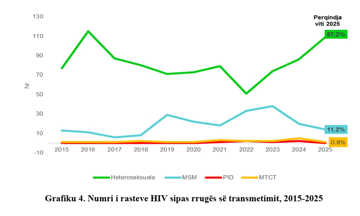 Edhe pse në nivele të ulëta, në vitin 2025 u regjistrua 1 rast i kalimit të virusit nga nëna te fëmija, gjë që thekson nevojën për testim të detyrueshëm gjatë shtatzënisë.