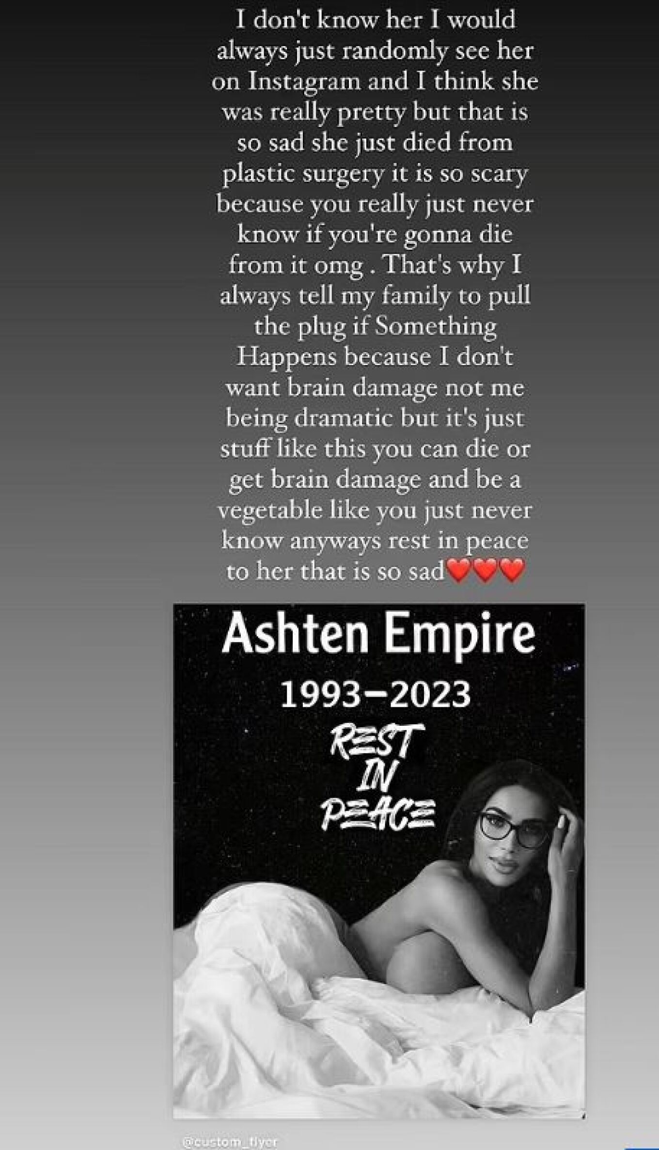 Sipas Daily Mail, vdekja e 34-vjeçares e cila njihej online si “Asten” ka ndodhur të enjten e kaluar në spitalin ku ajo po shërohej nga një operacion që iu nënshtrua.