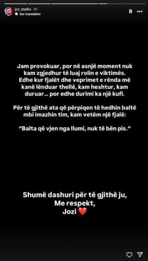 “Kam heshtur edhe kur më kanë lënduar rëndë. Por edhe heshtja ka një kufi,” shkruan Jozefi, duke nënkuptuar se situata e krijuar brenda shtëpisë ka qenë përtej durimit të tij. Ai tha se është ndjerë i provokuar në disa raste, por ka zgjedhur të mos luajë rolin e viktimës.