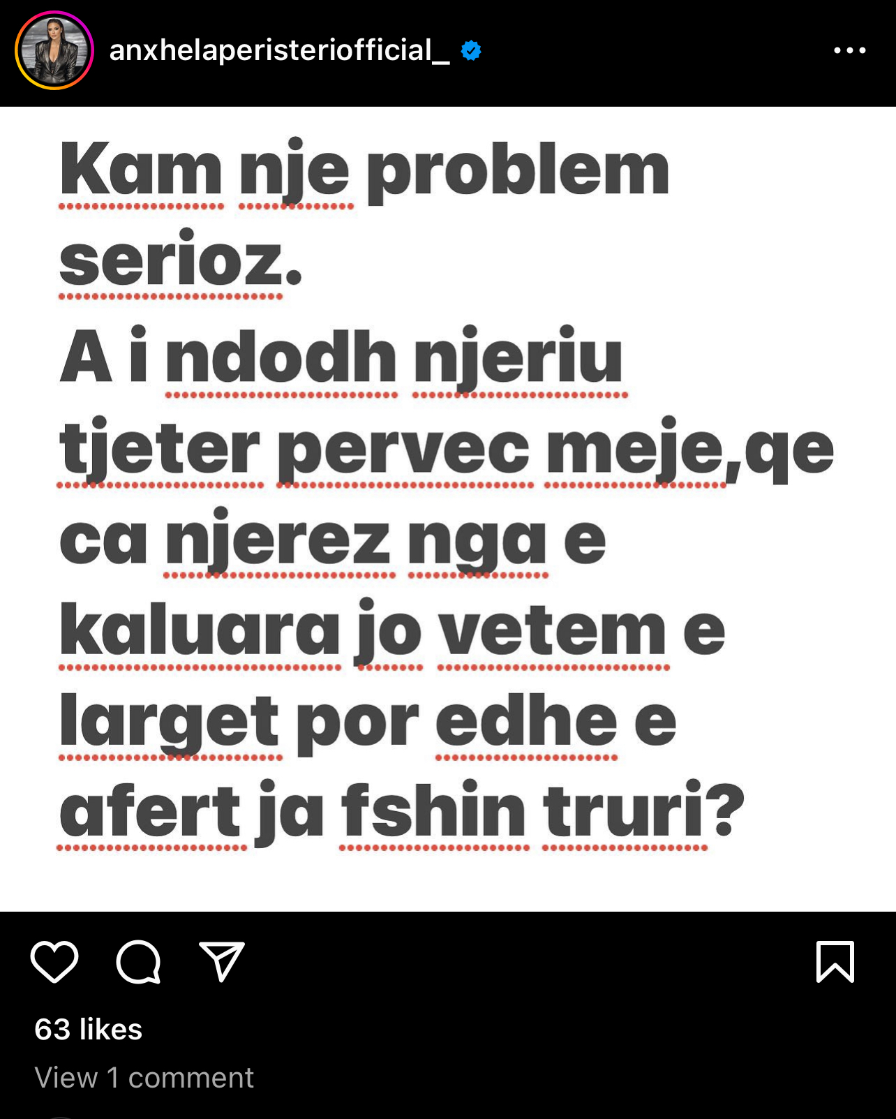 Këngëtarja e njohur Anxhela Peristeri nuk ndihet mirë pasi thotë se ka një problem. Me një postim në llogarinë e saj në Instagram, Anxhela ka ndarë një shqetësim të sajin. Ajo ka zbuluar se humbet memorien për disa gjëra, të afërta r të largta.