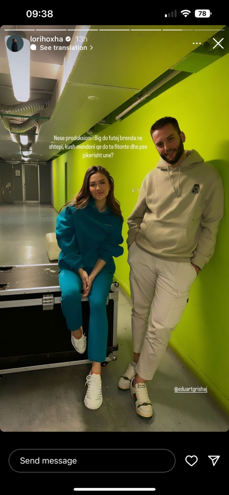Ishte vetë Lori ajo e cila ndau mbrëmjen e kaluar një foto së bashku me Eduartin, ku me humor ngrinte pyetjen se kush do e fitonte lojën nga produksioni e pse pikërisht ajo.