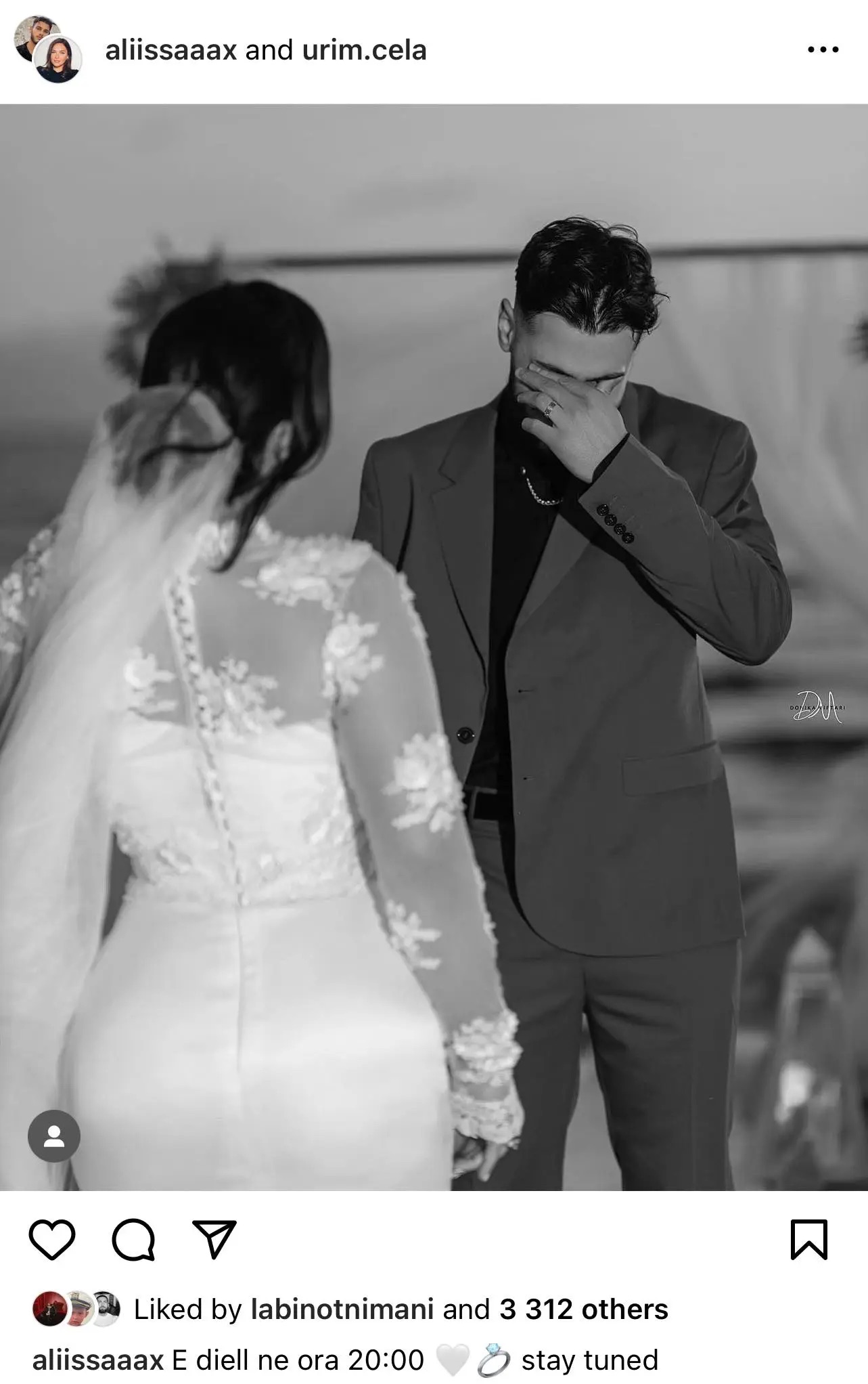 Alisa shihet e veshur me fustan të bardhë e ndërsa Urimi me kostum dhëndri. Po nuk dihet nëse bëhet fjalë për nje “prank”, projekt të ri, reklamë, klip apo mos ndoshta janë martuar me të vërtetë në fshehtësi.