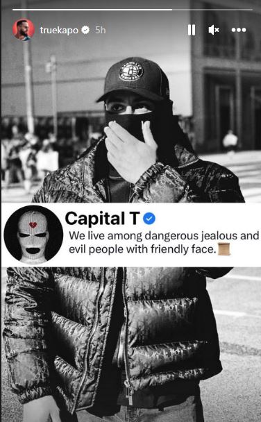Capital T mendon njësoj. Herë pas here reperi ndan në rrjetet sociale shkrime që lidhen me emocionet por nuk mungojnë edhe thumbat. Së fundmi, Trim Ademi bëri një postim ku përshkruante sipas tij dyfytyrësinë e njerëzve.