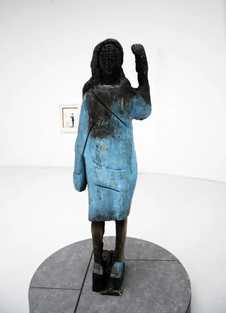 Ai shprehu “trishtimin” e tij për zhdukjen e veprës, e cila ishte mbështetur fort në trungun e pemës me ndihmën e betonit dhe shufrave të hekurit, duke i detyruar hajdutët ta prisnin atë në pikën sipër kyçeve të këmbëve.