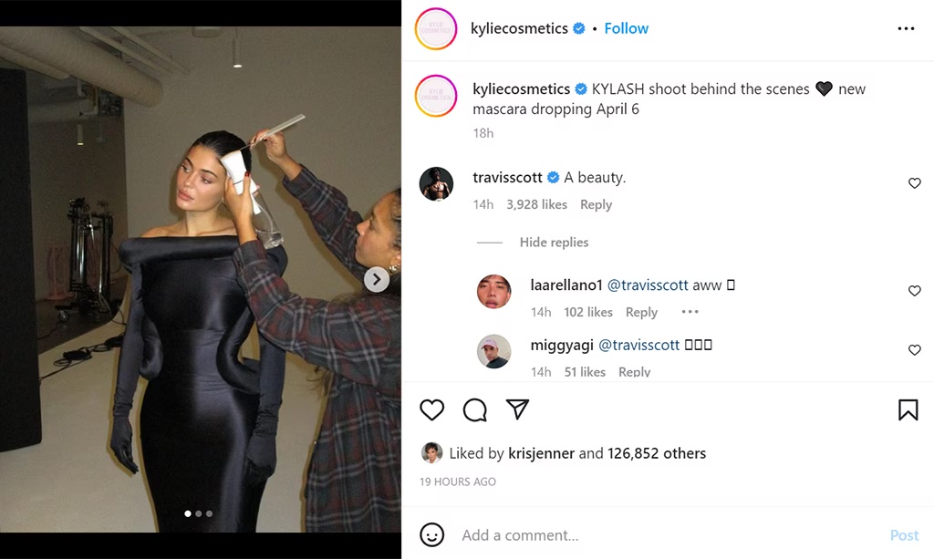 Më 1 prill, reperi la një koment në një postim që përmbante foto të Kylie Jenner që u shpërnda në llogarinë e kompanisë së saj Kylie Cosmetics në Instagram.