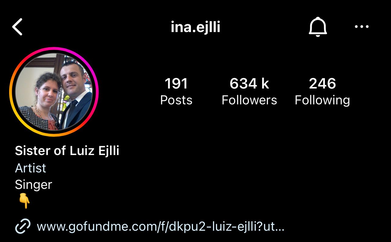 Tashmë llogaria zyrtare e këngëtarit nga ‘Luiz.Ejlli’ është kthyer në ‘Ina.Ejlli’ dhe për këtë motra e tij ka dhënë një sqarim.