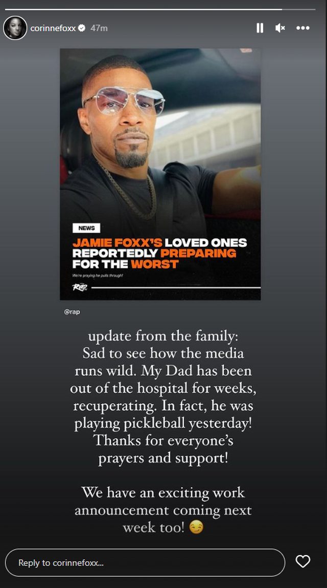 Në mediat botërore shëndeti i aktorit Jamie Foxx është kthyer në kryefjalën e mediave rozë. Së fundmi, ka pasur disa raportime kontradiktore për gjendjen e tij shëndetësore, madje e fundit ishte që aktori ishte në gjendje të rëndë, aq sa familja po lutet.
