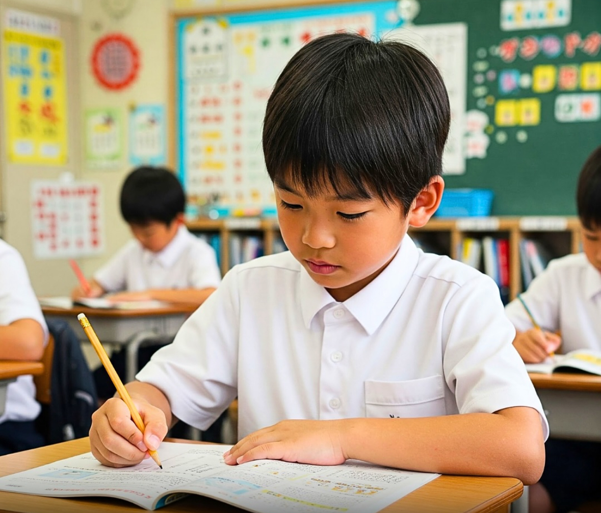 Në Japoni, arsimi formal fillon pa provime deri në klasën e katërt, rreth moshës 10 vjeç. Gjatë tre viteve të para, fokusi kryesor është në zhvillimin e sjelljes së mirë dhe formimin e karakterit.