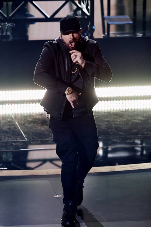 Mirëpo, ajo që publikut i bëri përshtypje ishte ngjitja e reperit Eminem në skenë, për të performuar hitin e tij “Lose Yourself”.