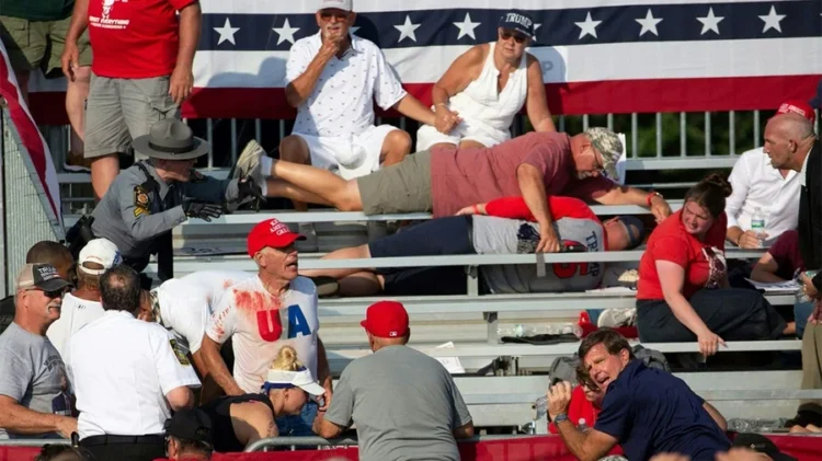Donald Trump ishte në tribunë, gjashtë minuta pas fjalimit të tij në një tubim të hapur të fushatës në Butler, Pensilvani, nën diellin e nxehtë. Papritur dëgjohen të shtëna armësh. Pasojnë klithma tmerri. Spektatorët bien në tokë. Trump menjëherë kap veshin e djathtë, shikon gjakun në dorë dhe shpejt bie në tokë pas foltores.