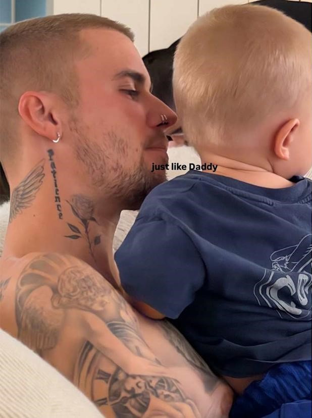 Në imazh, Justin Bieber, 31 vjeç, shfaqet pa bluzë, duke treguar tatuazhet e tij karakteristike, ndërsa e mban me kujdes djalin e vogël me flokë biondë. Hailey, 29 vjeçe, e shoqëroi foton me mbishkrimin: “Njësoj si babai”, duke nënvizuar ngjashmërinë mes babait dhe të birit.