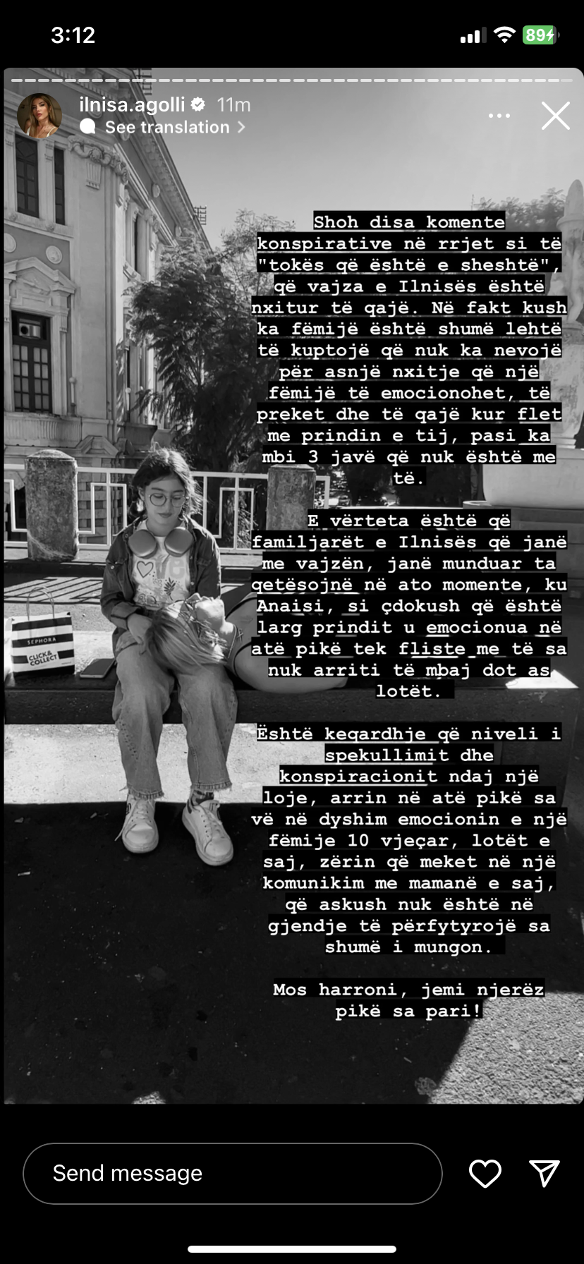 Një reagim i menjëhershëm ka ardhur dhe prej familjarëve të Ilnisës të cilët janë menaxhues të rrjeteve të saja sociale dhe shkruajnë: