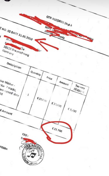 Pasi deklaratat e S4MM u përhapen në rrjete sociale, ka reaguar Gent duke publikuar kontratën e bërë me Noizyn dhe OTR duke vërtetuar se ka paguar 23 mijë e 760 euro dhe jo 100 mijë euro.
