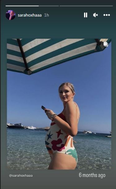Ajo ka ndarë një foto para 6 muajsh të saj, ku shihet në plazh, e në bark mban vajzën.