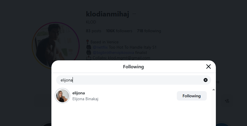 Sipas asaj që kanë vënë re ndjekësit në rrjetet sociale, Elijones dhe Klodi vazhdojnë të jenë “follow” me njëri-tjetrin, një detaj që për shumë fansa konsiderohet si një shenjë se raporti mes tyre nuk është prishur pas përfundimit të reality-show-t.