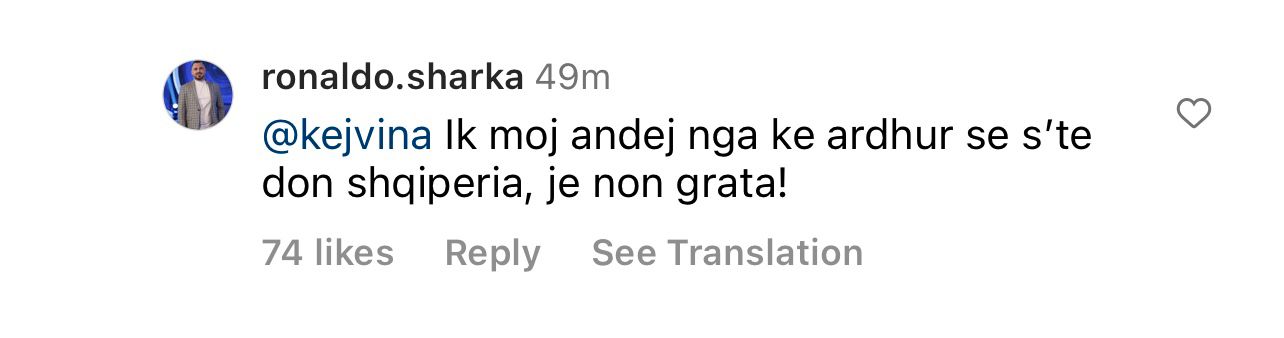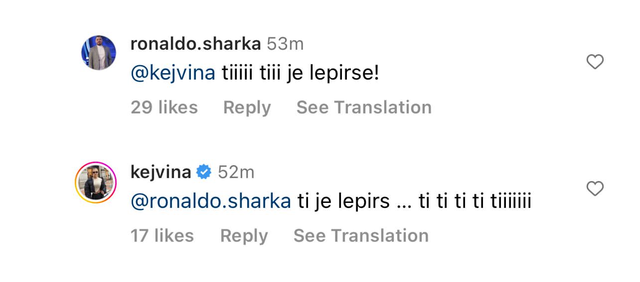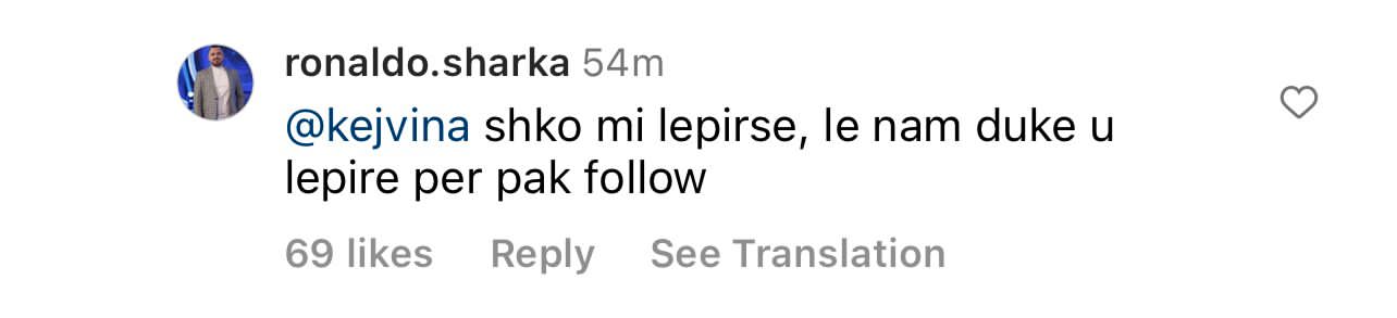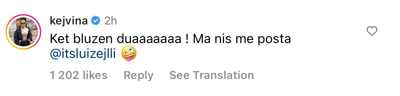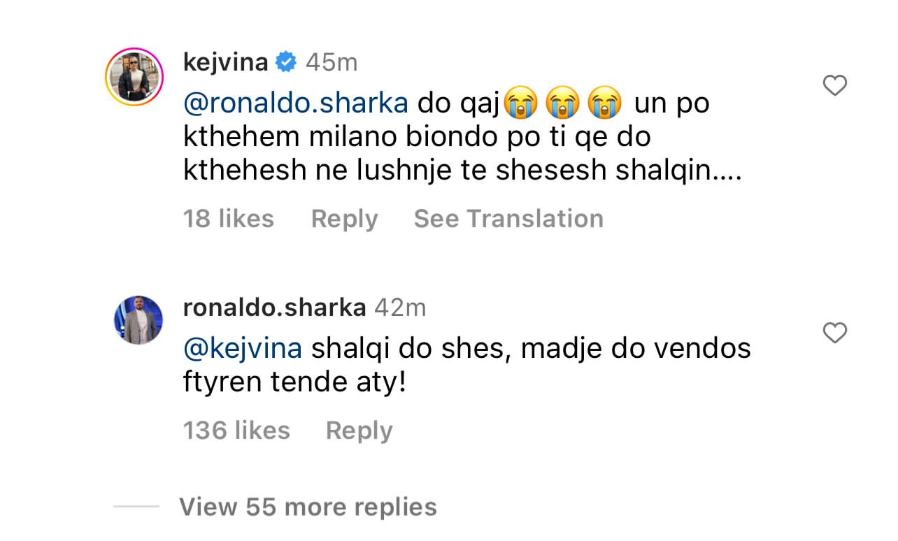 E me “kunje”, sot, Kejvina ia ka rikujtuar. Në postimin e fundit të Luizit, ajo i ka kërkuar bluzën publikisht, mirëpo duket se kjo ka sjellë një ‘luftë’ me Ronaldo Sharkën, ish-banorin e ‘BBV’. Ata të dy kanë nisur përplasjet, deri në ofendime.