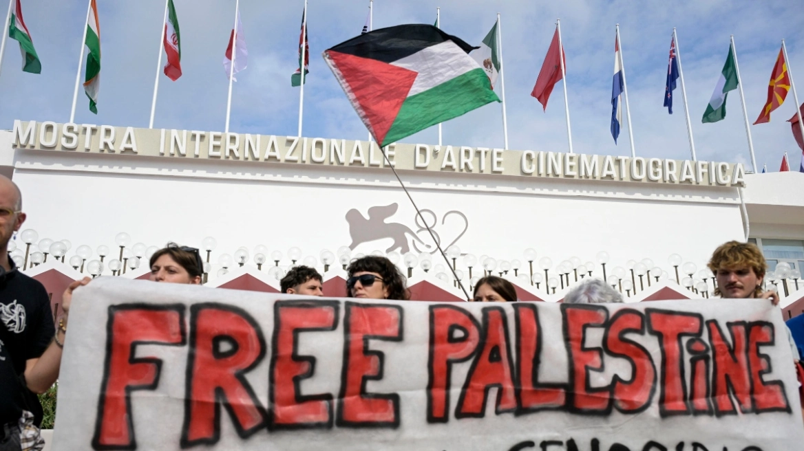 Një grup protestuesish në Venecia shpalosën një banderolë kundër luftës në Gaza, disa orë para fillimit të Festivalit të 82-të Ndërkombëtar të Filmit në Lido. Rreth 20 persona, anëtarë të një kolektivi të krahut të majtë në rajonin e Venecias, shpalosën një banderolë që shkruante “Lironi Palestinën” dhe “Ndaloni Gjenocidin”. Ata gjithashtu ngritën flamuj palestinezë përpara sallës së festivalit.
