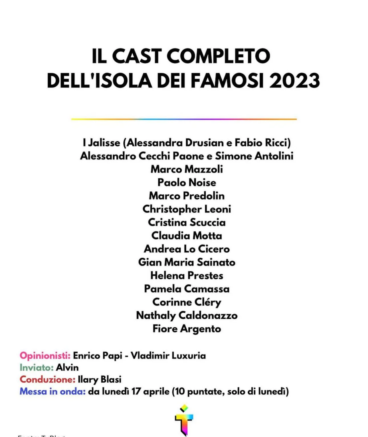 Moderatorja do të jetë Ilary Blasi, opinionist Enrico Papi dhe Vladimir Luxurie, i dërguari në terren do jetë Alvin.