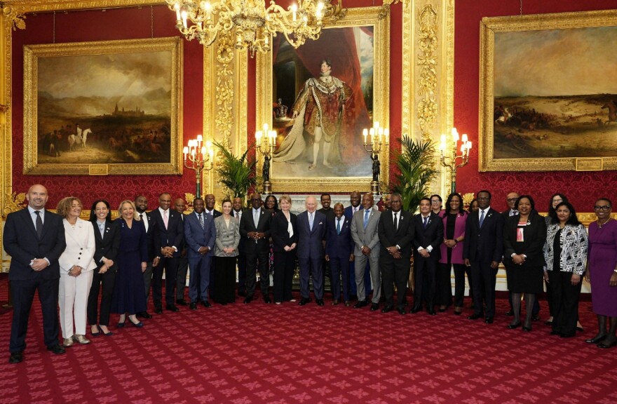 Aktivistët dhe studiuesit e skllavërisë e kanë kritikuar monarkinë britanike pasi Mbreti Charles pozoi me personalitete të Karaibeve në një pritje nën një portret të George IV, i cili e bëri pasurinë e tij nga puna e skllevërve në plantacionet në Grenada. Charles priti një mori banorësh të ishujve të Karaibeve në Pallatin e Shën Jakobit më 10 mars për pritjen vjetore të Komonuelthit. Ministrat e jashtëm të Xhamajkës, Shën Kitsit dhe Nevisit dhe Trinidadit dhe Tobagos ishin midis të pranishmëve.