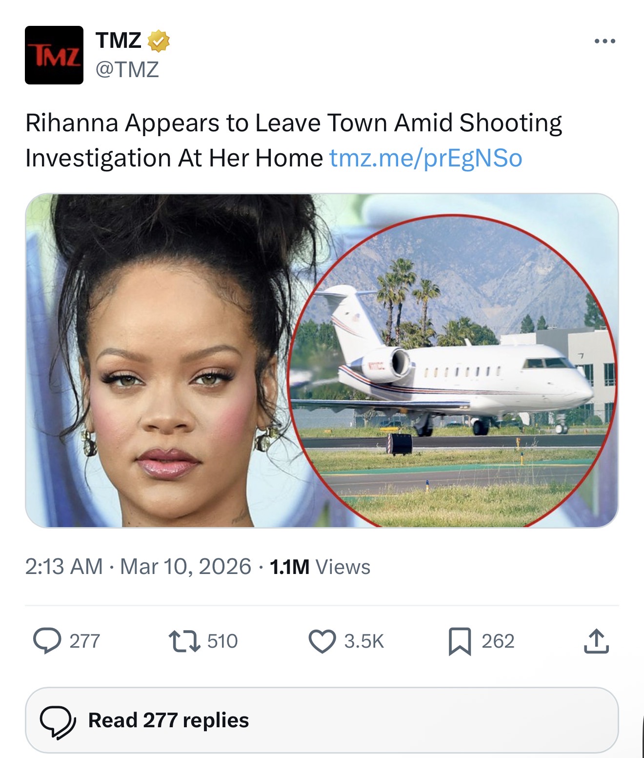 Sipas raportimeve të TMZ, Rihanna u pa duke u nisur me avion nga Los Angeles të hënën pasdite, ndërsa valixhet e saj u transportuan në Aeroportin Van Nuys. Autoritetet arrestuan 35-vjeçaren Ivanna Lisette Ortiz, e cila u akuzua për tentativa vrasjeje, me një kaucion prej rreth 10.2 milionë dollarësh.