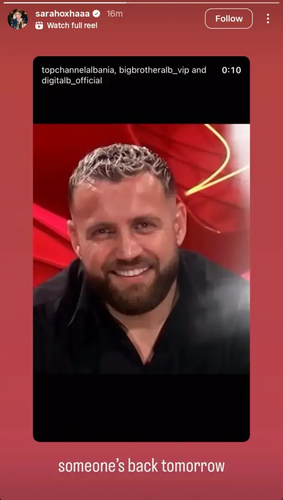 Ndërkohë, producentja Sara Hoxha ishte ajo që zbuloi edhe detajin më të rëndësishëm: kohën. Përmes një Instastory, ajo rishpërndau videon virale të Luizit, duke e shoqëruar me diçiturën në anglisht: “Someone’s back tomorrow” (Dikush rikthehet nesër). Ky mesazh i shkurtër, por domethënës, mjaftoi për të konfirmuar se rikthimi do të ndodhë shumë shpejt.