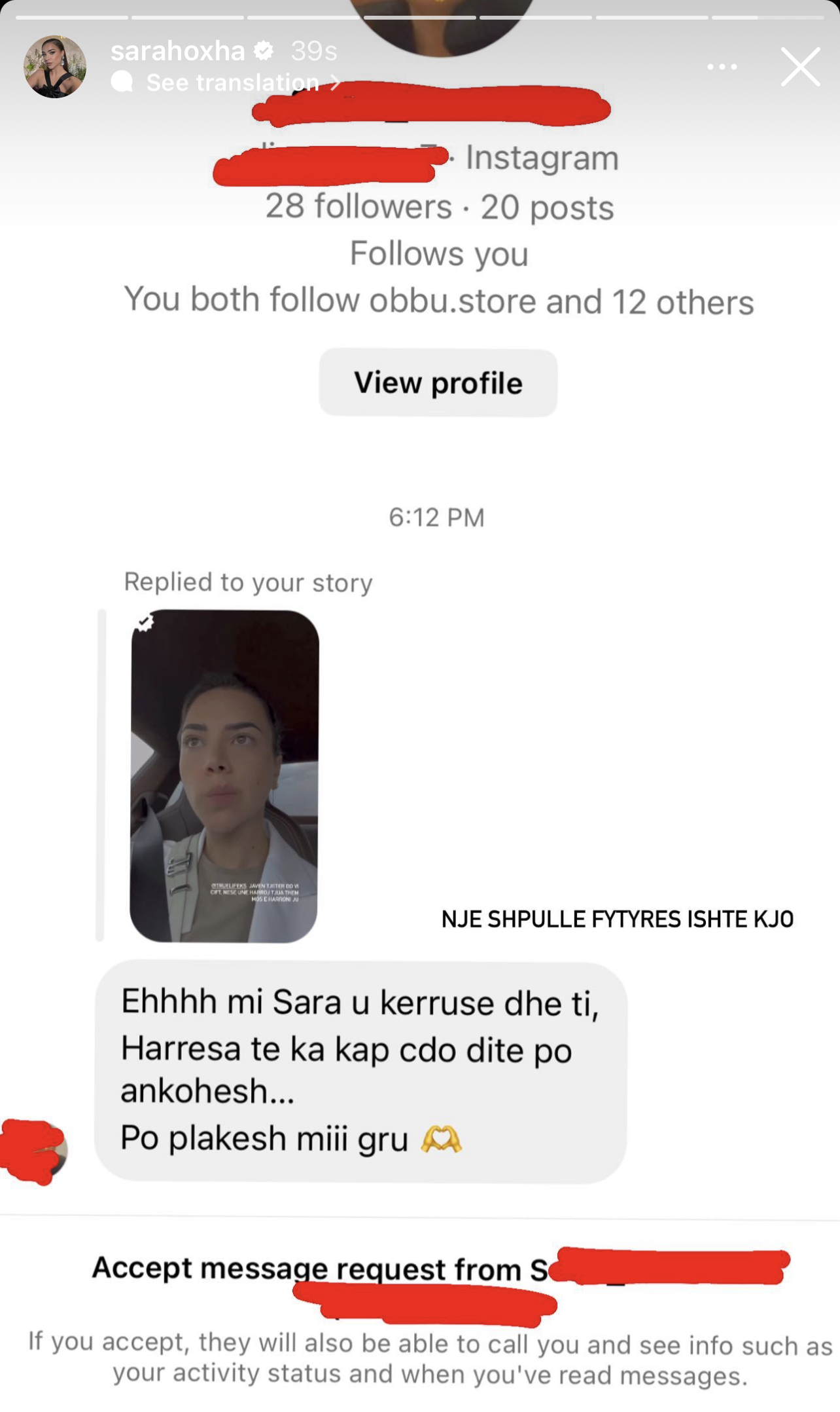 Nga ana tjetër Sara shkroi: Një shpullë fytyrës ishte kjo!