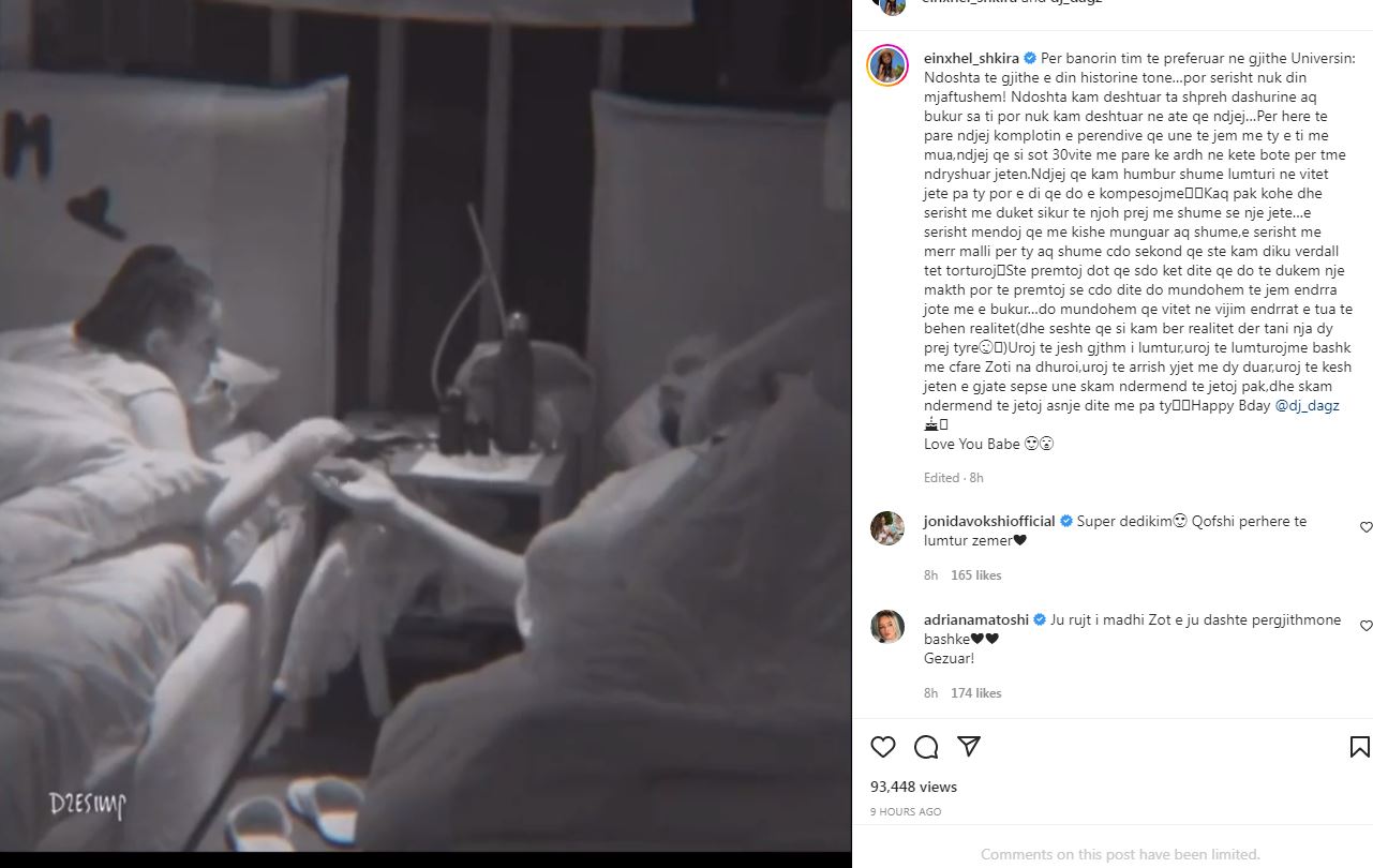 Mirëpo, Einxhel ka publikuar një video me momentet më të ëmbla të tyre brenda BBV si dhe ka shkruar disa fjalë të bukura për Dagz, pikërisht për ditëlindjen e tij.