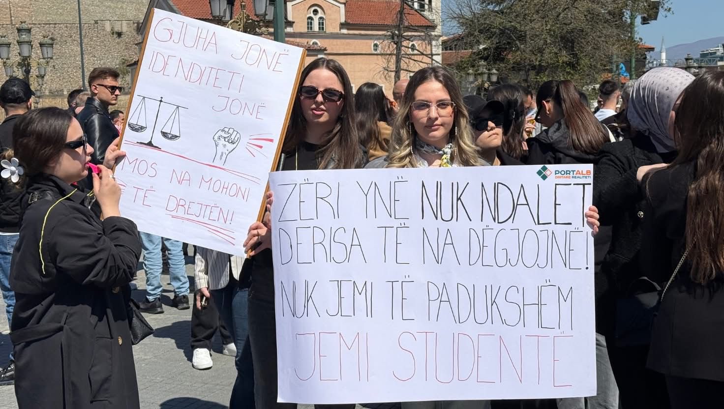 “Kjo është gjuha jonë, identiteti ynë. Ne jemi student të drejtësisë që nesër do të mbrojmë ligjin, dhe sot jemi këtu për të përdorur diçka që ligji tashmë e njeh. Jemi këtu për të drejtën tonë. Gjuha është historia. Sot jemi të bashkuar dhe nuk do lejojmë që shqipja të trajtohet si opsion, sepse nuk është opsion por identitet. Nuk ka shtet të së drejtës pa respekt për gjuhën. Ky është amaneti i atyre para nesh, dhe porosia për ata që do të vijnë pas nesh. Shqipja nuk negociohet”, u shtoi Ademi.