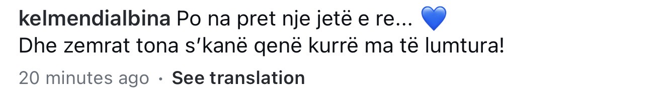 Në postimin e publikuar, çifti tregon gëzimin dhe emocionet që po përjetojnë për këtë kapitull të ri në jetën e tyre. “Po na pret një jetë e re… Dhe zemrat tona s’kanë qenë kurrë më të lumtura!”, ka shkruar Albina përbri fotografisë. Përveç fjalëve të ndjera, përdorimi i një zemre blu në fund të mbishkrimit ka tërhequr menjëherë vëmendjen e ndjekësve, të cilët kanë nisur të spekulojnë se Albina dhe Valoni mund të jenë në pritje të një djali.