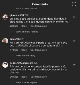 Heidi shtoi se moderatori i “Grande Fratello-s”,Alfonso Signorini kishte mbajtur më shumë se njëherë anën e Massimilianos duke e shndërruar historinë. Reagimi i publikut italian pas kësaj deklarate ka qenë i menjëhershëm.