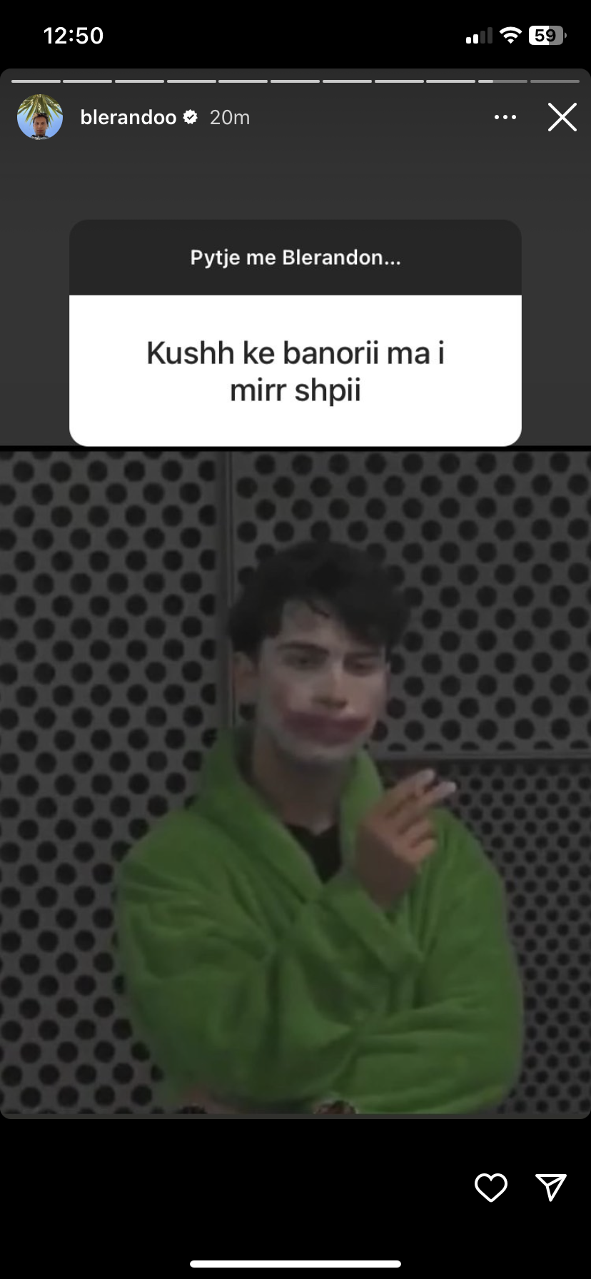 Duke vendosur një fotografi të tijën në Instastory, përkrah pyetjes së drejtuar ndaj tij, ai tregon qartë mesazhin që do të përcjelli për audiencën.
