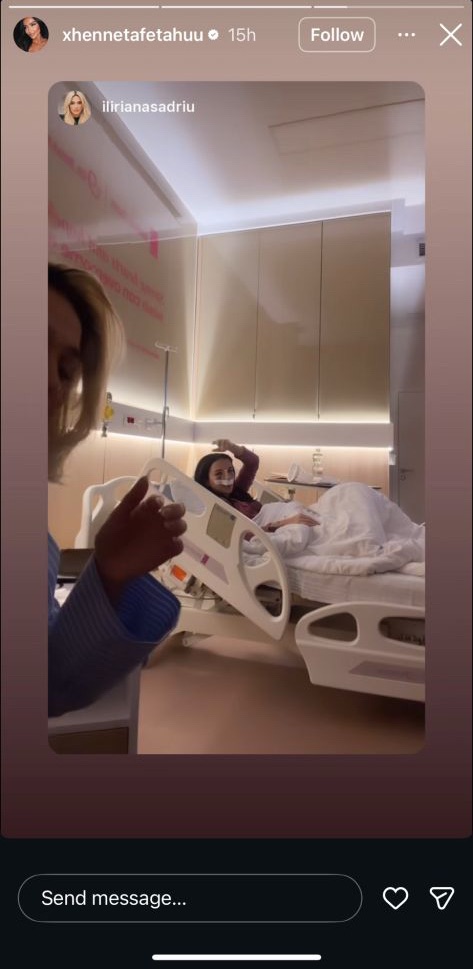 Në “story”-n e publikuar, Xheneta shfaqet e shtrirë në shtratin e spitalit, me fashë në hundë, menjëherë pas ndërhyrjes. Pranë saj shihen edhe dy persona shumë të afërt, Adri dhe Iliriana, të cilët i qëndrojnë pranë dhe i ofrojnë mbështetje gjatë rikuperimit. Prania e tyre ka tërhequr vëmendjen e ndjekësve, duke treguar se ajo nuk është vetëm në këtë proces.