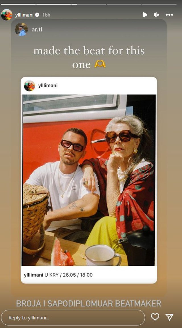 Arti ka krijkuar ‘beat-in’ e këngës së fundit të Yll Limanit që publikohet më 26 maj. Në një postim në Instagram vëllai i artistit shkruan “Kam bërë beat-in e kësaj kënge”.
